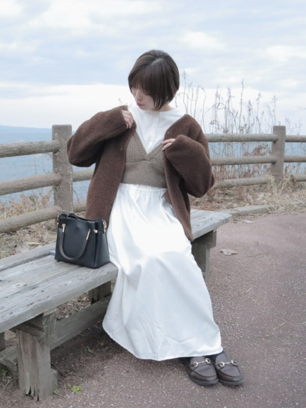 白×ブラウンで 冬っぽくかわいくしてみました♡ アウターはモコモコでとっても暖かい😊 Instagram ▸▸▸ tsu_mugimugi よかったらみてみてくださいෆ ̖́-