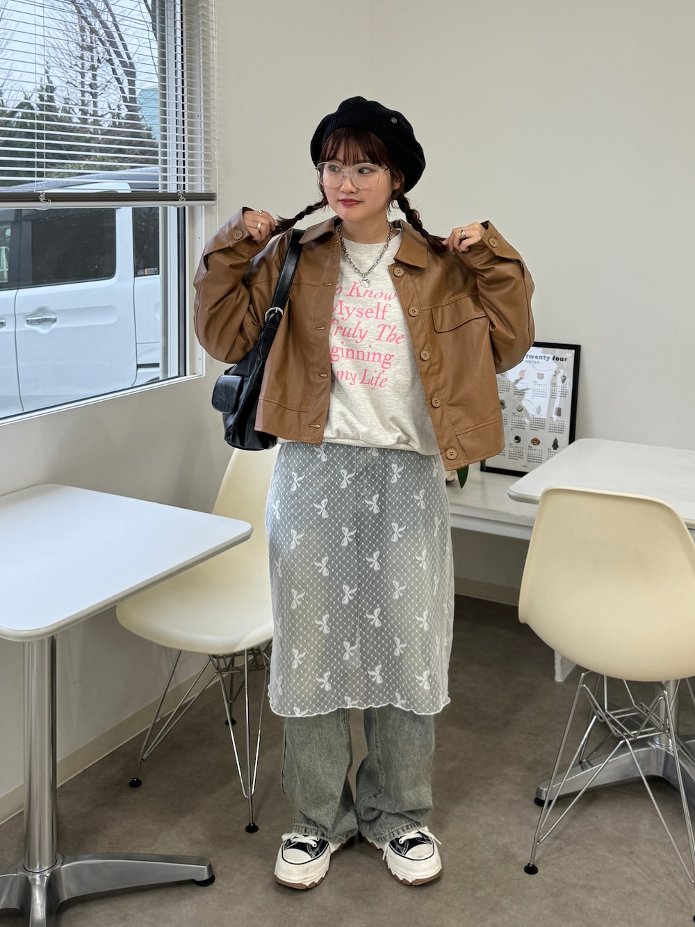 春のレイヤードスタイル🌸 シンプルすぎて寂しいなって思う時は レーススカート重ねるとおしゃれ見え👀 instagram @___.ri.n