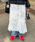 シャツ×デニムの普通コーデに レースのスカート重ねるだけで一気にオシャレ見え😎 キャップ、ヘッドホン、トートバッグで カジュアルを程よく取り入れて⭐️⭐️