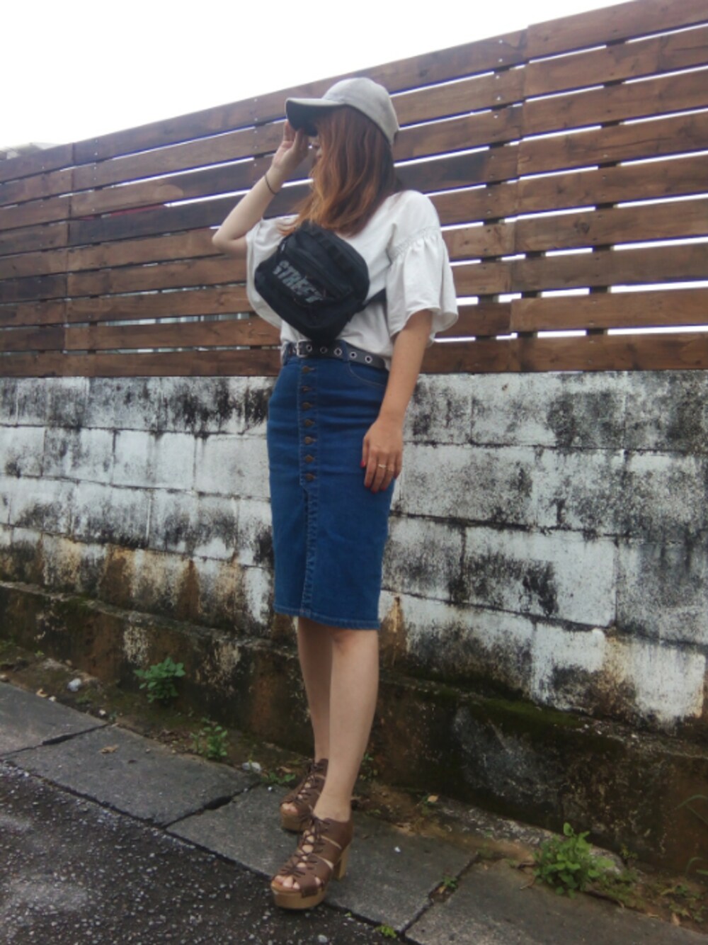 りんごのショルダーバッグ「WEGO/メッシュポケットSTREETショルダーバッグ」を使ったコーディネート