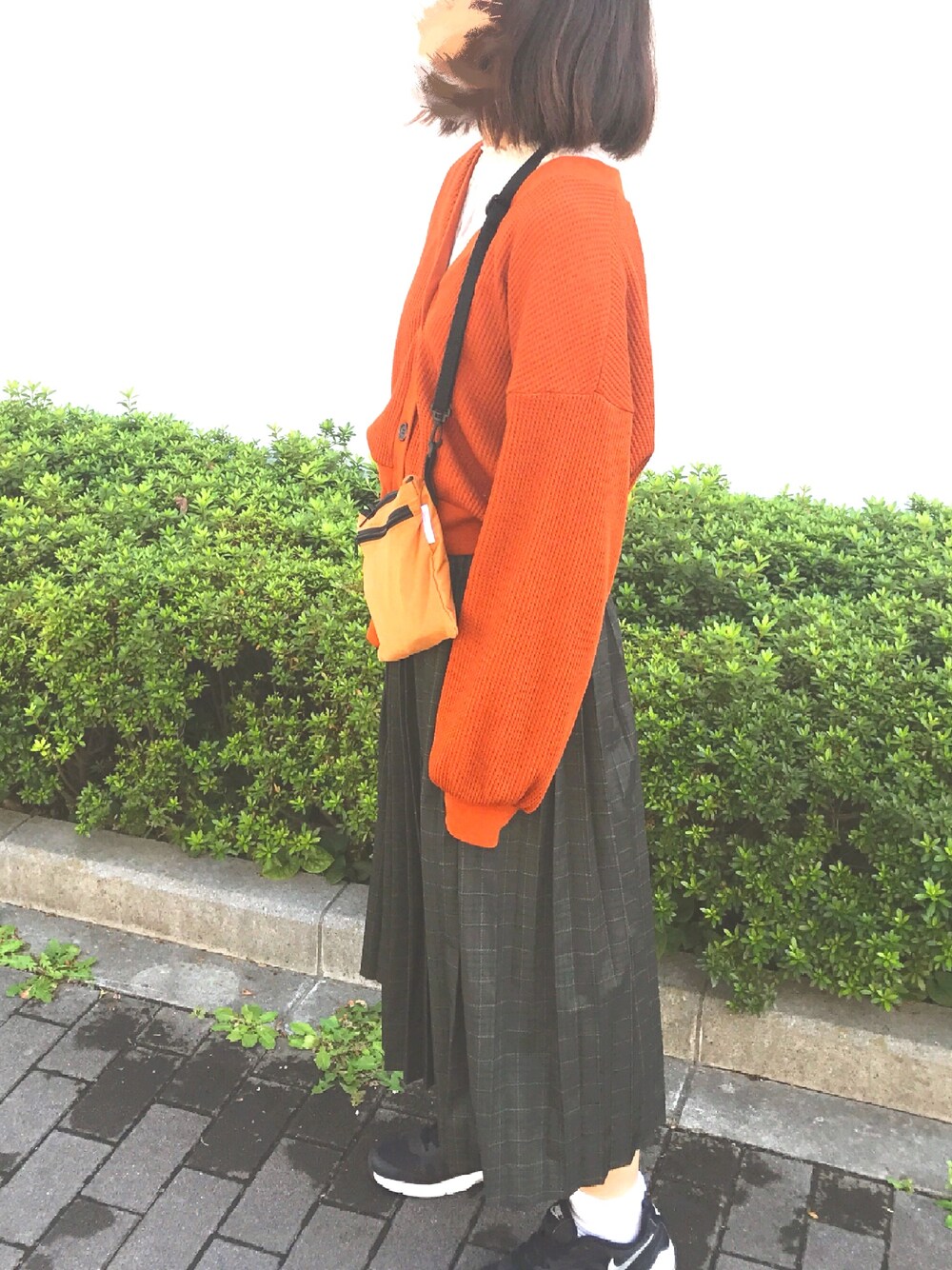初めての外撮りです◎ オレンジのカーディガンが可愛すぎて、迷わず購入しました☺️🍂