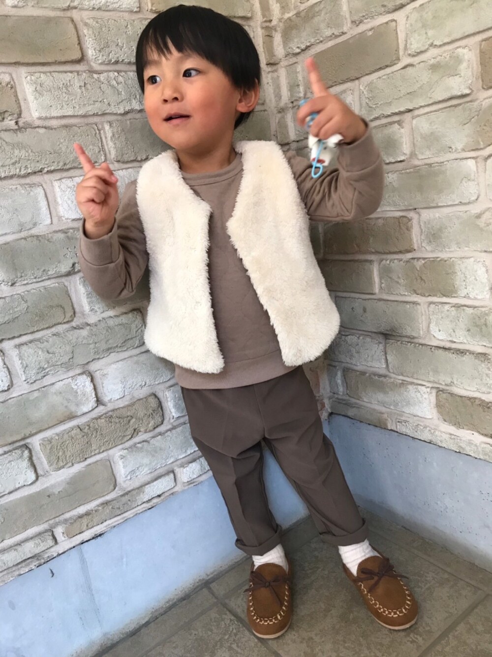 いつも見ていただきありがとうございます^ ^いいね、フォルダーインすごく嬉しいです‼︎ お気に入りのベストが小さくなってきて、成長を感じます^ ^ 西松屋のモカシンはお安いし、可愛くていいです♡