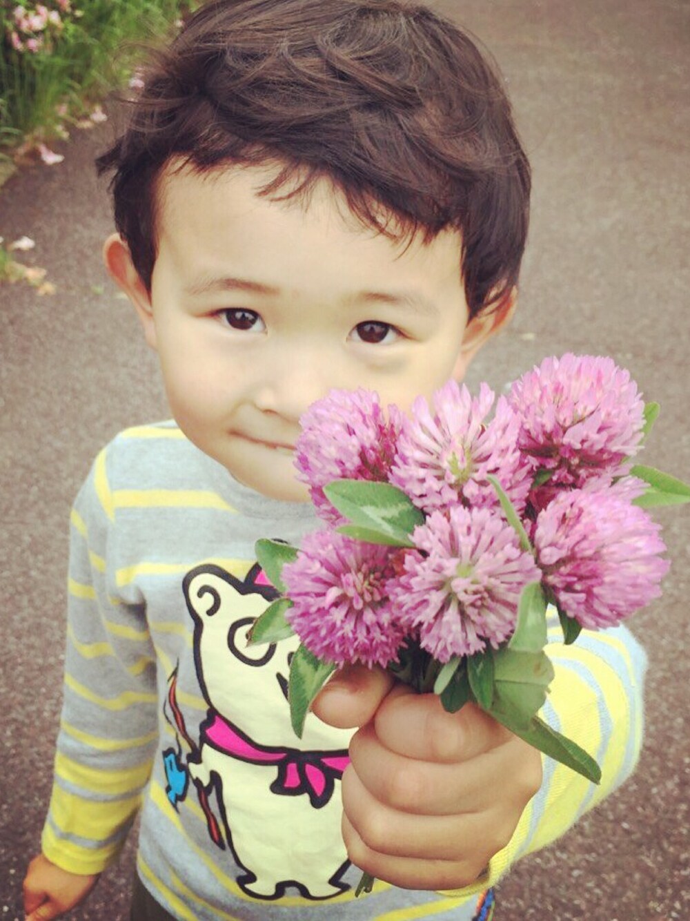 道端に咲く花を摘んだ💗 花の似合う3歳児😍