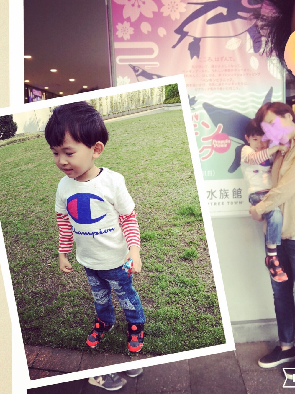 こないだのおでかけコーデ♡ 息子と出かける時は、抱っこ率高いので汚されてもいい服で。 何歳から抱っこしなくて済むんだろう😭