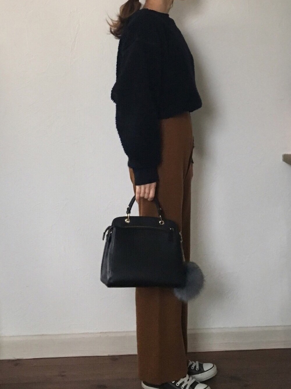 ニットパンツ♡ 生地がしっかりしていて膝の部分がボコっとならないところが好き! フォロー、いいね、save、励みになります¨̮♡︎ ありがとうございます♪