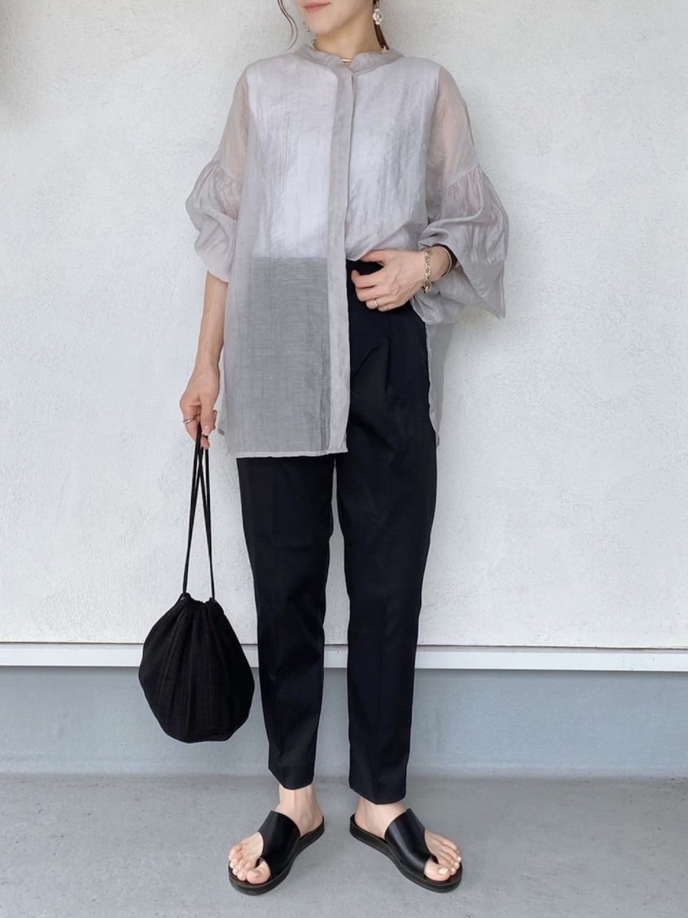 Ryoのシャツ/ブラウス「シアースタンドギャザーブラウス/シャツ/スタンドカラー/チュニック/フォーマル」を使ったコーディネート