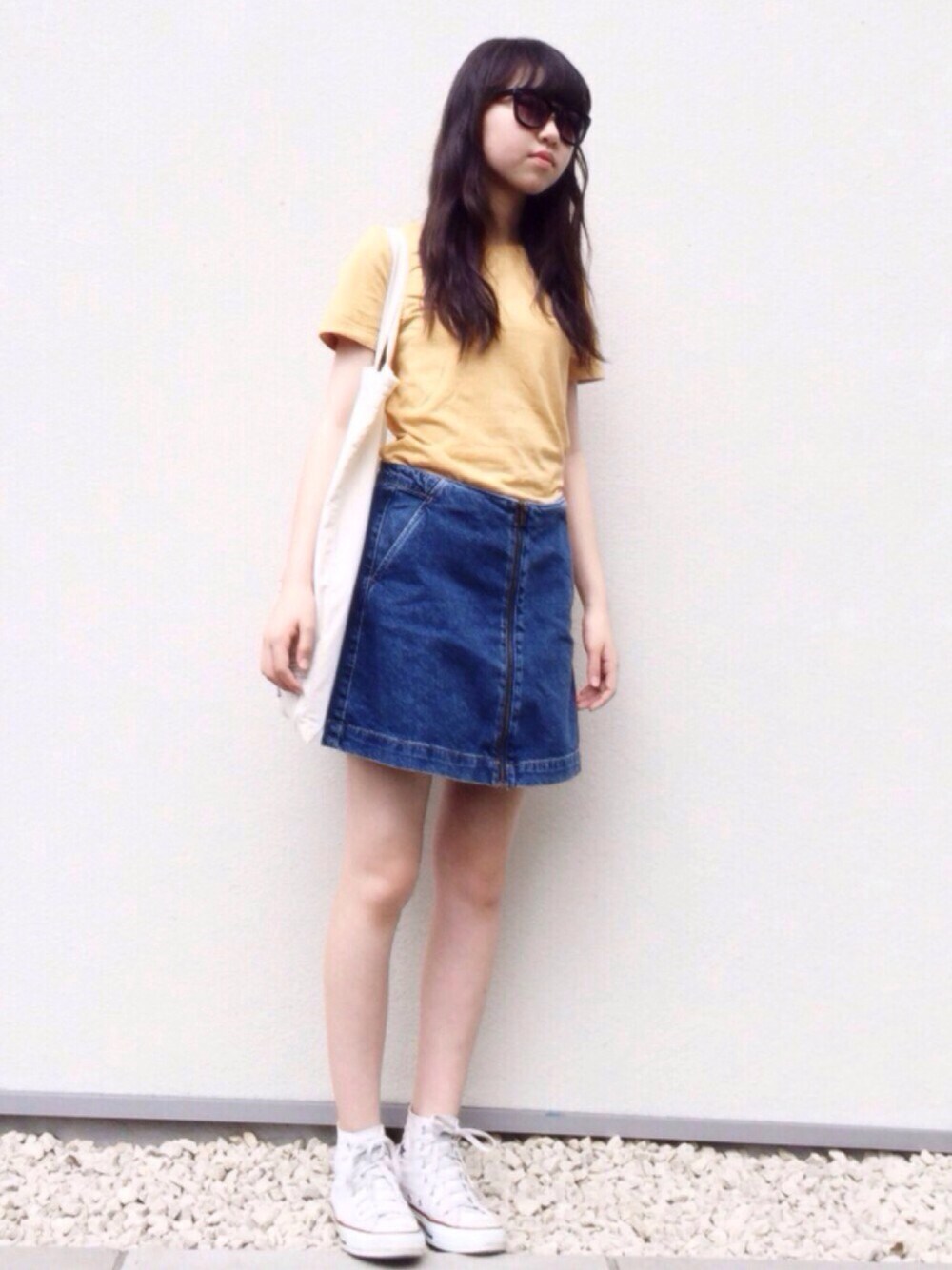 こんにちは! 前回のコメントで言っていたデニムスカートを使ったコーデです! 久しぶりの色があるコーデ! 無印はやっぱり着心地が良い👍👍 髪はコテでなみなみっぽく巻きました!🌸 今回も見てくださりありがとうございました!💕💕