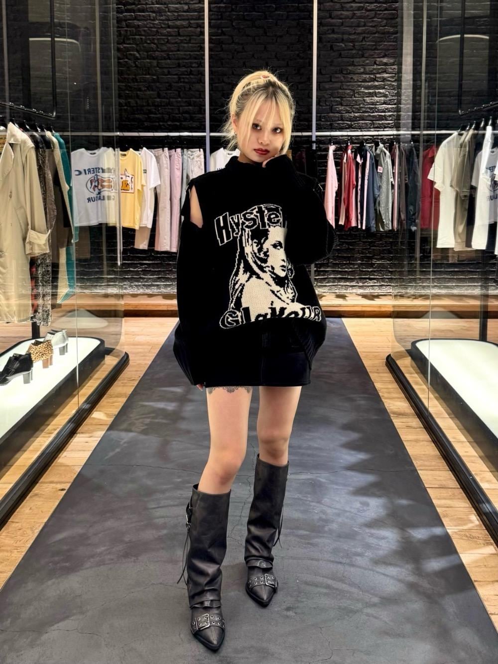 ayk(HYSTERIC GLAMOURなんばパークス店)のデニムスカート「バックレースアップ マイクロミニデニムスカート」を使ったコーディネート
