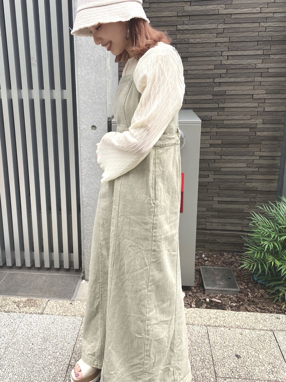 ERINAのワンピース「【大人フェミニンなデニムstyle。】バックスリットハイウエストロングデニムキャミワンピース」を使ったコーディネート