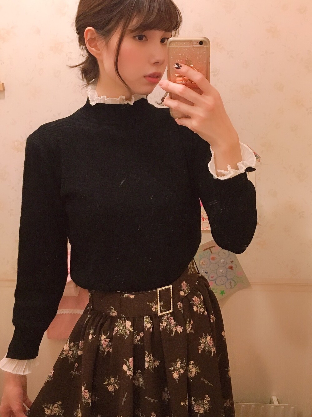 可愛すぎるミルボヌールの花柄フレアスカート💖 ベルトのアングルがスワロフスキーでキラキラなのが素敵なのです。 アラサーでも着れちゃう大人フェミニン