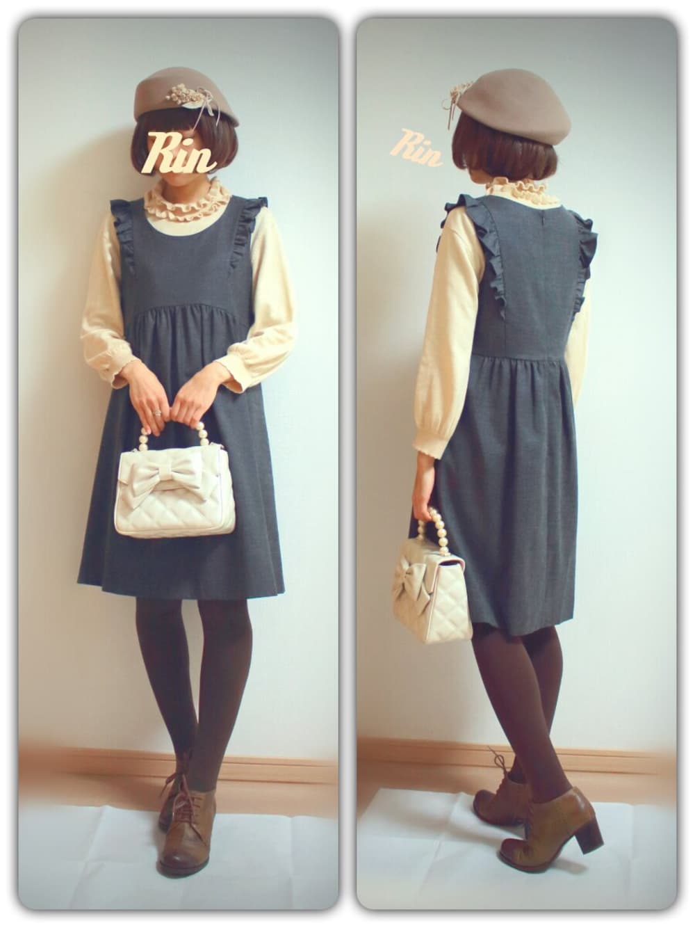 フリルのタートルネックに フリルの付いたジャンスカ。 上品めにまとめてみました。
