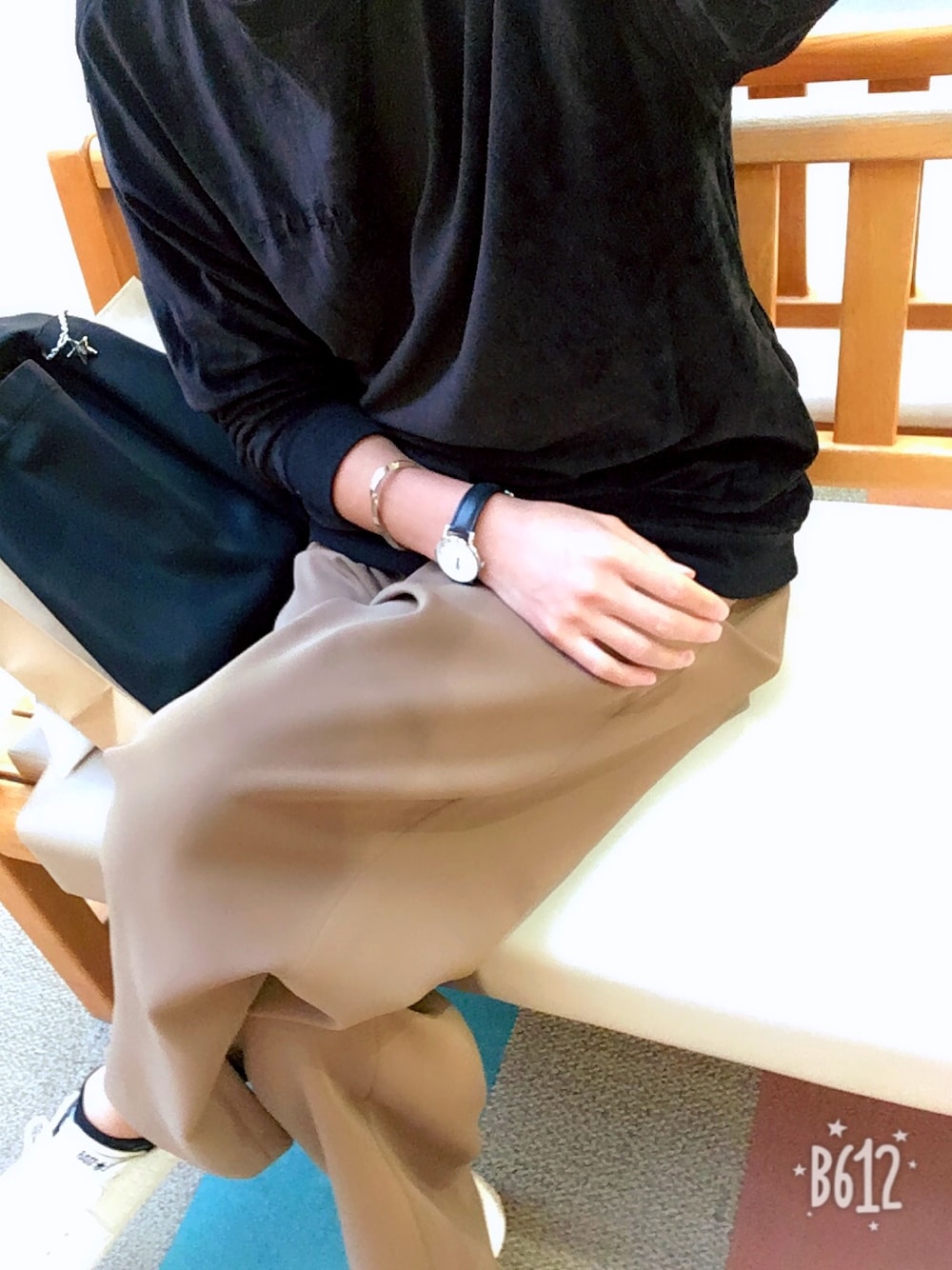 春や秋に使えそうなコーデ! ベロアシャツが安くて着回ししやすい感じ🤗 顔が写ってなければ女性に見えなくもない…( ˙꒳˙ )