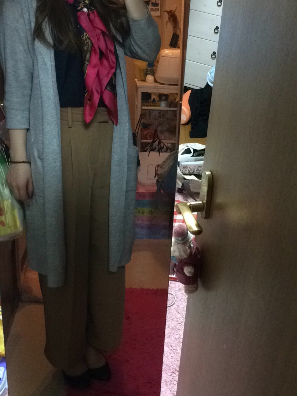 初投稿します。 写真がうまく撮れません!笑 早く引越したい!笑 今日はお休みだったので! 暑かったのでまだTシャツ。 スカーフ首に巻いてアクセントにしました〜 今年はスカーフ流行るみたい!