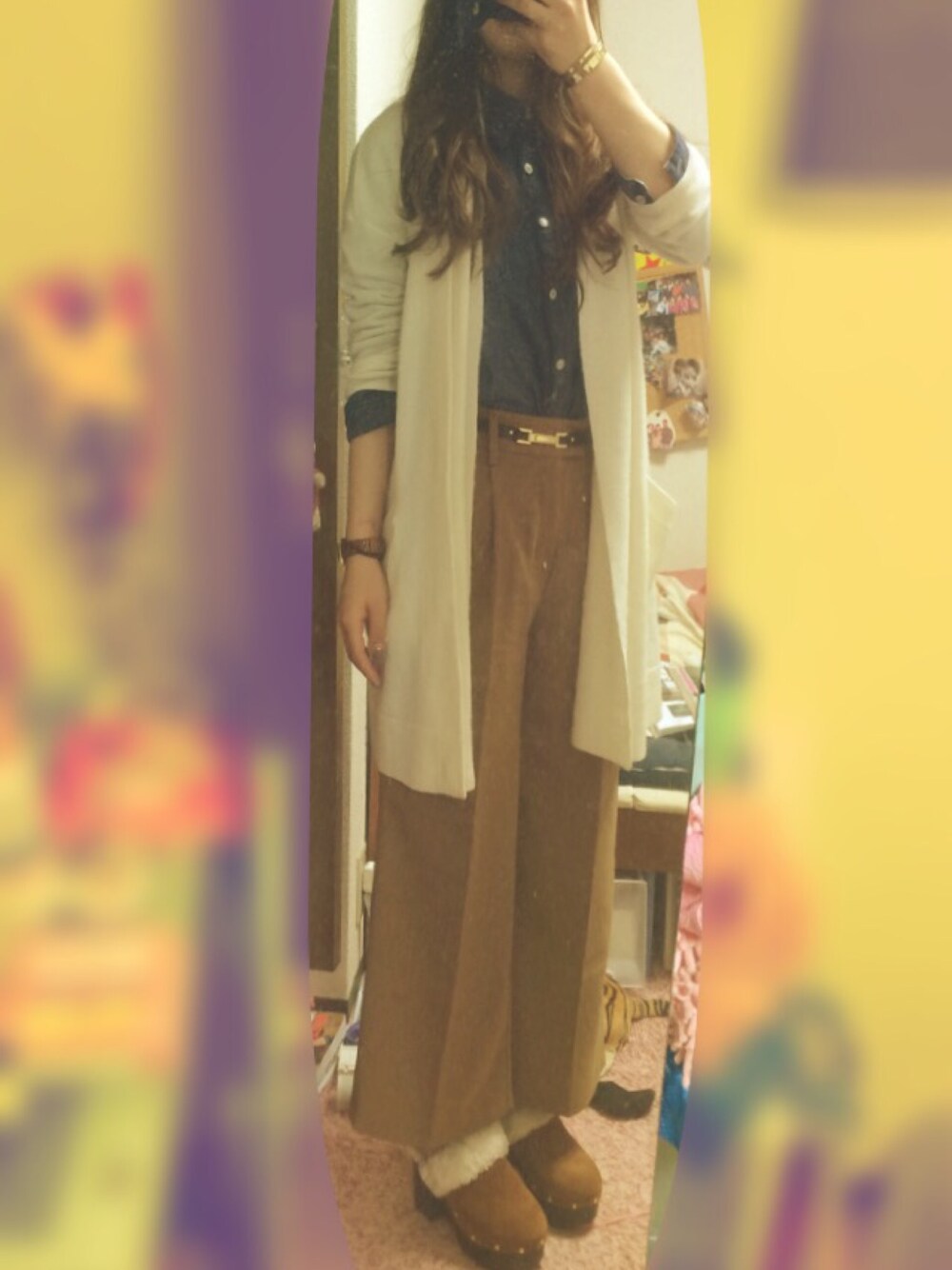 気温下がりましたね〜 ますます秋っぽくなってきました カーデが丁度いい!!! こないだ買った ファーサボ履いてみました! 可愛すぎる… でもサボはほんと歩きやすくて 楽ちんです〜!!! おすすめ! 安定のGUパンツ
