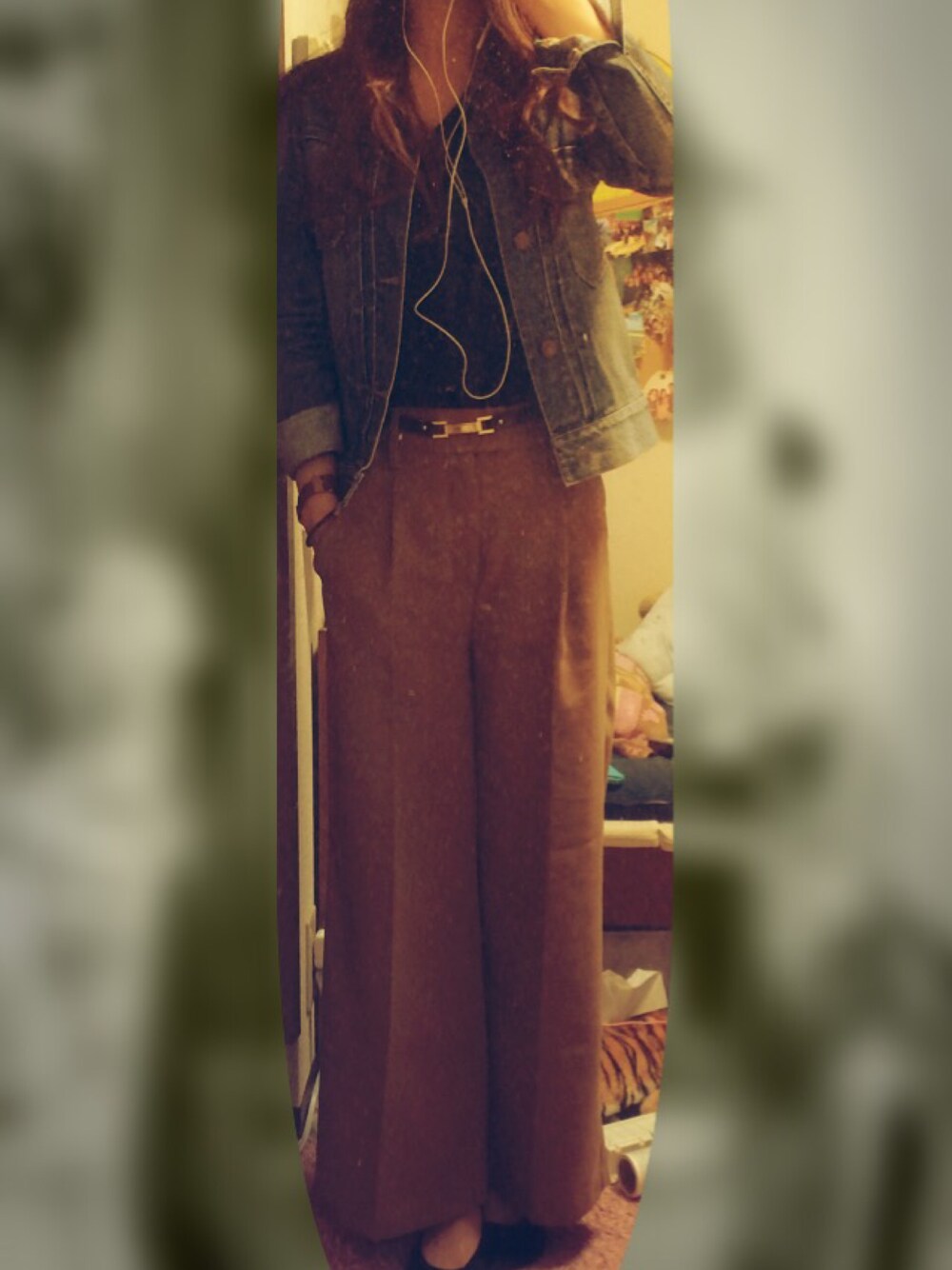 昨日のコーデ 最近ほんと涼しくなって 寒い!って感じるぐらいになりました〜 デニムジャケットの上に チェックの大判ショールを 羽織ってました。 靴はおじ靴〜 ワイドパンツには ショート丈ジャケットが 足長効果ですね♪