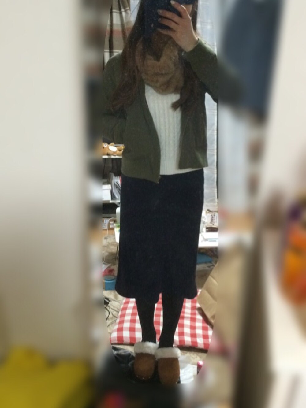 ひさしぶりの投稿でーす 12月になりました 気温も下がってきて、本格的に寒くなってきた〜 るんるん〜 やっとファーサボ履いて 出かけてみた!! やっぱ楽チンです。 最近はニットタイトスカート好きです GUさまさま