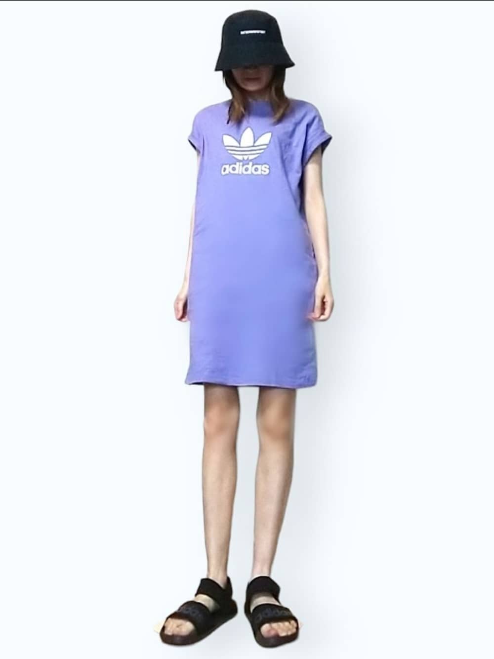 見つけて下さりありがとうございます☺︎ adidasコーデ。 ワンピースのカラーに一目惚れですᕷ*゜