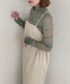 ┈┈┈┈┈┈┈┈┈┈┈┈┈┈┈┈┈┈┈┈┈┈┈ 身長:160cm/骨格:ウェーブ パーソナルカラー:ブルベ冬/普段サイズ:M 【Instagram】@13rinaeyo ┈┈┈┈┈┈┈┈┈┈┈┈┈┈┈┈┈┈┈┈┈┈┈ コーデpoint:シースルートップス合わせで春先を意識したコーデ!インナー次第で着回しできる♪ ・1313160028 ・シースルーハイネックカットソー ・着用サイズ:FR ・サイズ感:ぴったり ・素材感:ポリエステル、ポリウレタン ・着心地:肌にピタッと着れるので着回ししやすい! ・1313140021 ・ジレ風ラップミニジャンパースカート ・着用サイズ:M ・サイズ感:余裕がある。もし、ピタッとした感じが好きな方はSサイズでもいいかも! ・1313193020 ・トラックソールミドルブーツ ・着用サイズ:M ・サイズ感:ちょうどいい ・素材・着心地:歩きやすい