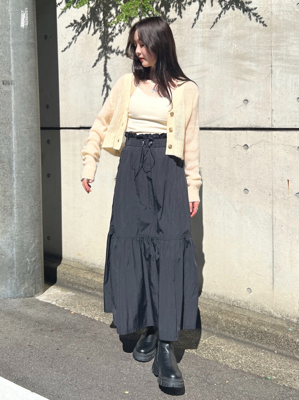 RINAのカーディガン/ボレロ「◆シアーモヘアライクショート丈カーディガン」を使ったコーディネート