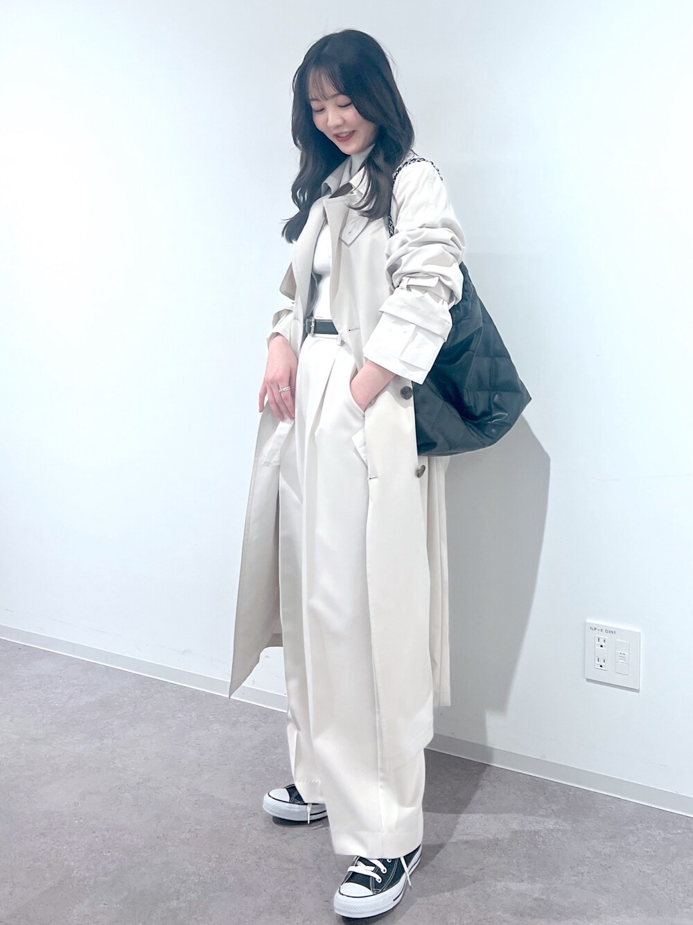 カジュアル、フェミニンどちらにも合うスタンダードなトレンチコート 丈感はすねあたりです! ベーシックカラーをお持ちの方は今年は薄めなカラーに挑戦するのはいかがでしょうか✨ ニット(オフ/FR) へそ上あたりの丈感になっていて、ボリューム感のあるパンツ、スカートと合わせるとスタイルアップ効果抜群です! パンツ(オフ/M) ストレートパンツなので、きれい系にもカジュアル系にも合わせやすく、1枚は欲しいアイテム! 丈感は長すぎず、ぺたんこを履いてもじめんにつかない程度です!