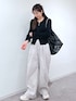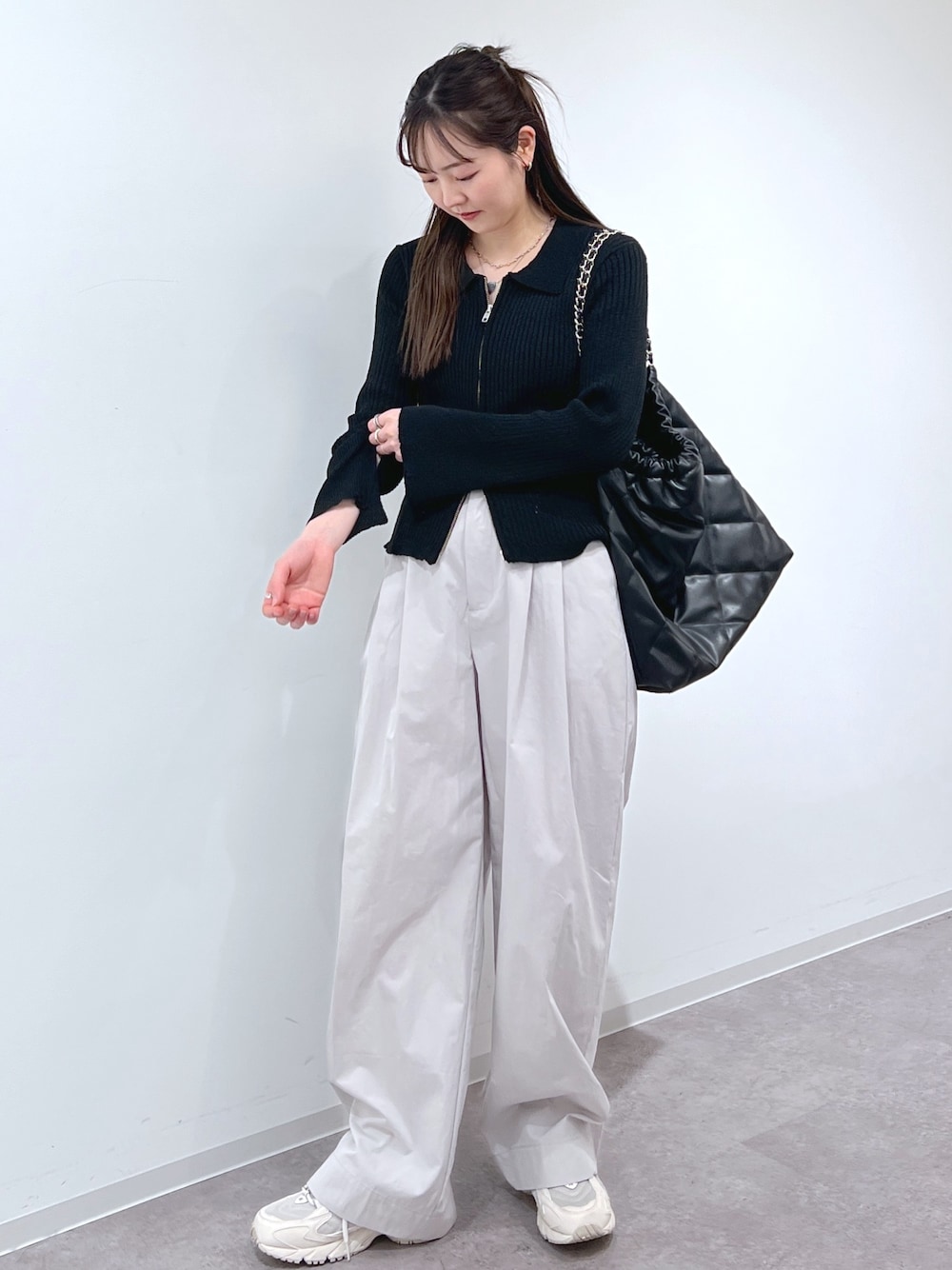 ニット(ブラック/FR) 全ジップなので 羽織としても着用可能です! 丈感は腰上あたりです パンツ(グレー/M) ゆとりがあるルーズパンツです! シャカシャカとした夏まできやすい軽い素材です!