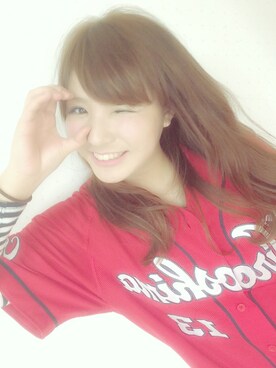 「カープユニフォームのアイテム(パーカー、レッド系)」を使った、Rina.Odaさん(レディース・157cm)の冬コーディネート
