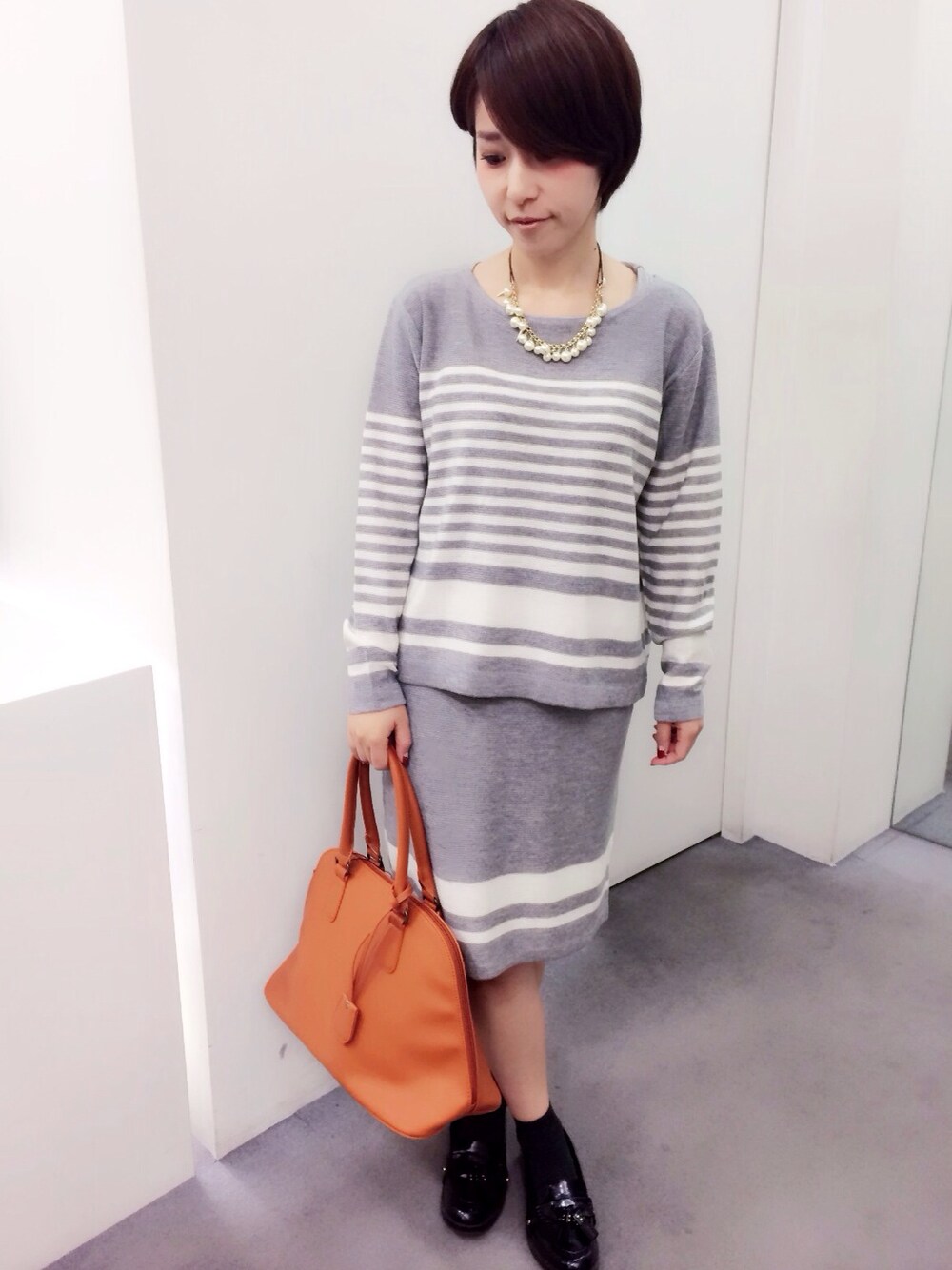 rinaのアクセサリー「スタッズパールネックレス」を使ったコーディネート