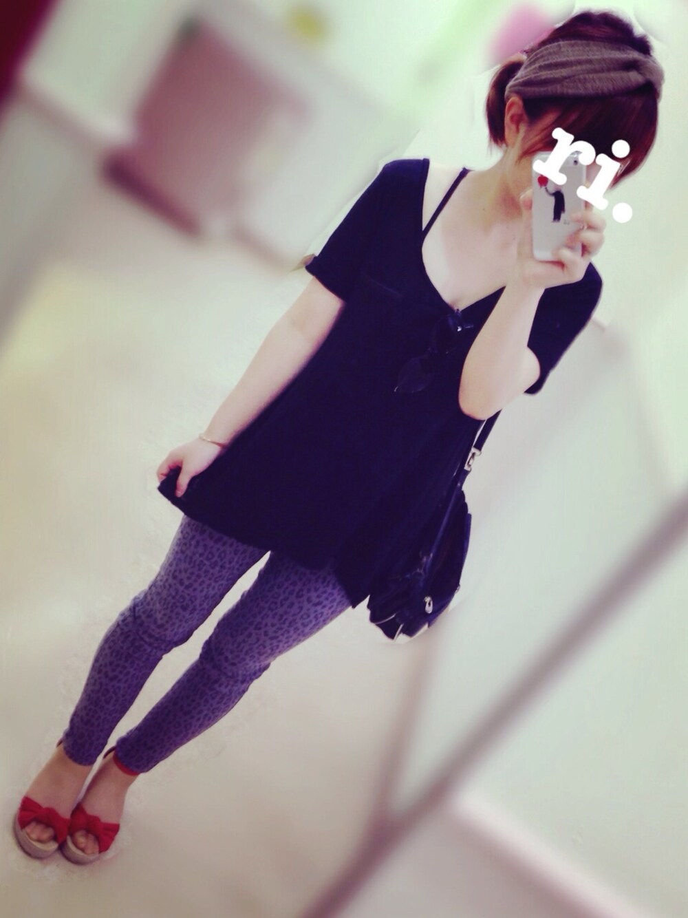 サンダルメインにしたくて、他は黒に。 足デブなんで細く見えるように撮りたかったんだけど、なんだか短足になってしまいました_| ̄|○ ちなみに肩から見えてる紐は、GUのブラトップです。すごく便利。 ターバンはブラウンです! 見えにくいですが、サングラスぶら下げてますw