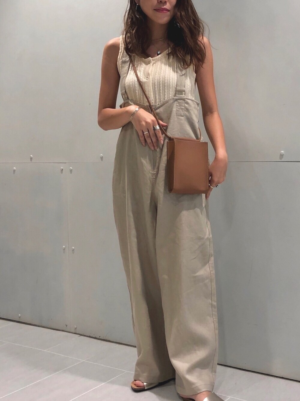 低身長でも着れる、サロペット! 夏はサロペットにタンクトップが可愛い~❤︎ ベージュのワントーンで合わせてよりおしゃれに✨