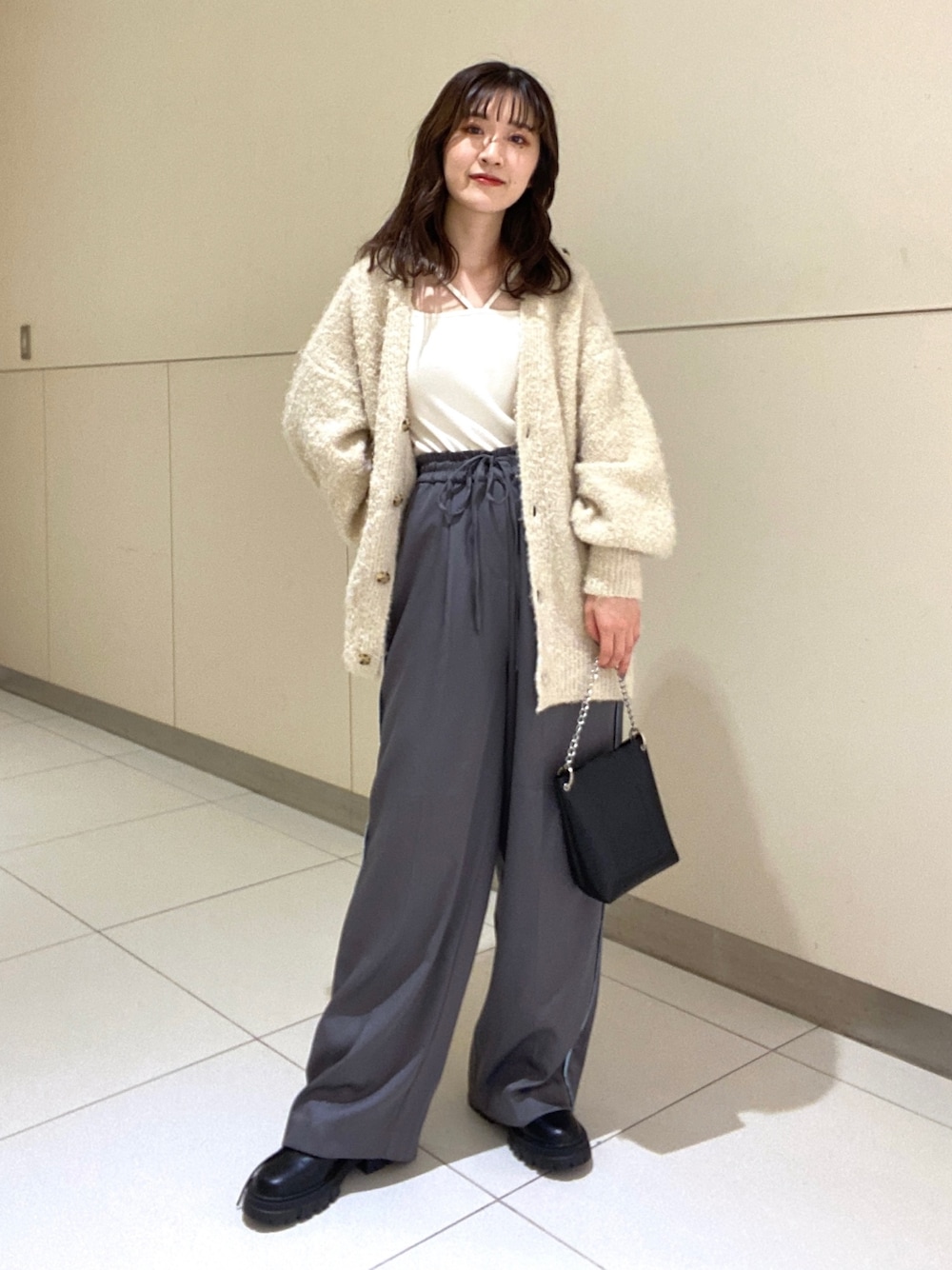 Rinaのカーディガン/ボレロ「◆[WEB限定カラー]ミックスブークレーニットカーディガン」を使ったコーディネート