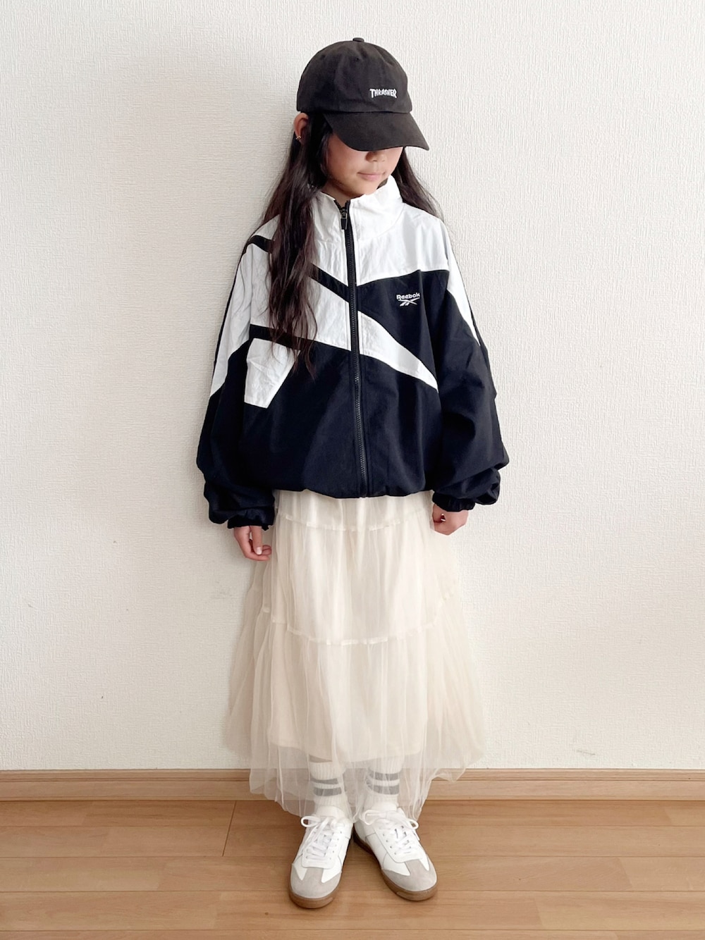 トラックジャケット着回し·͜· ♡ シアースカートで女子力up♪ 見て頂きありがとうございます ig ➤ ri_ri9231jp StyleHint ➤ rena9231 9y 134cm