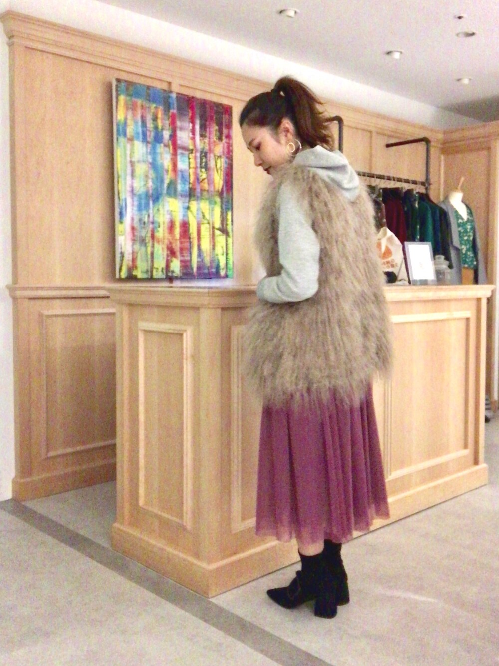 ベーシックカラーのコーデに、スカートでアクセント♡