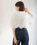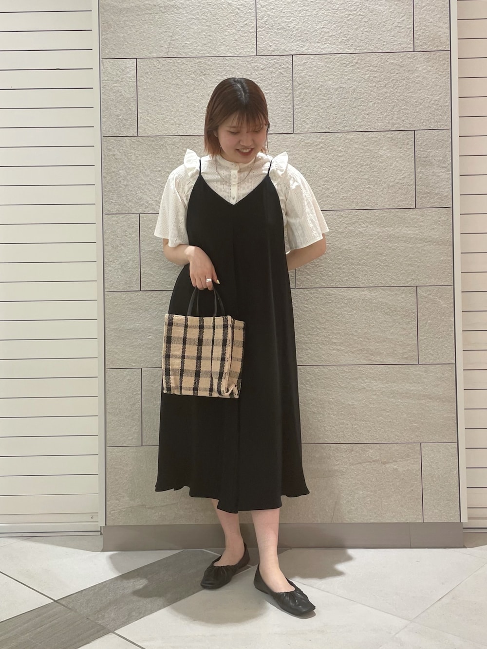 KBFのフリルブラウスにキャミワンピースで綺麗目に合わせて見ました!🤍 透け感があるフリルのブラウスは夏にぴったりです!🌼🧺