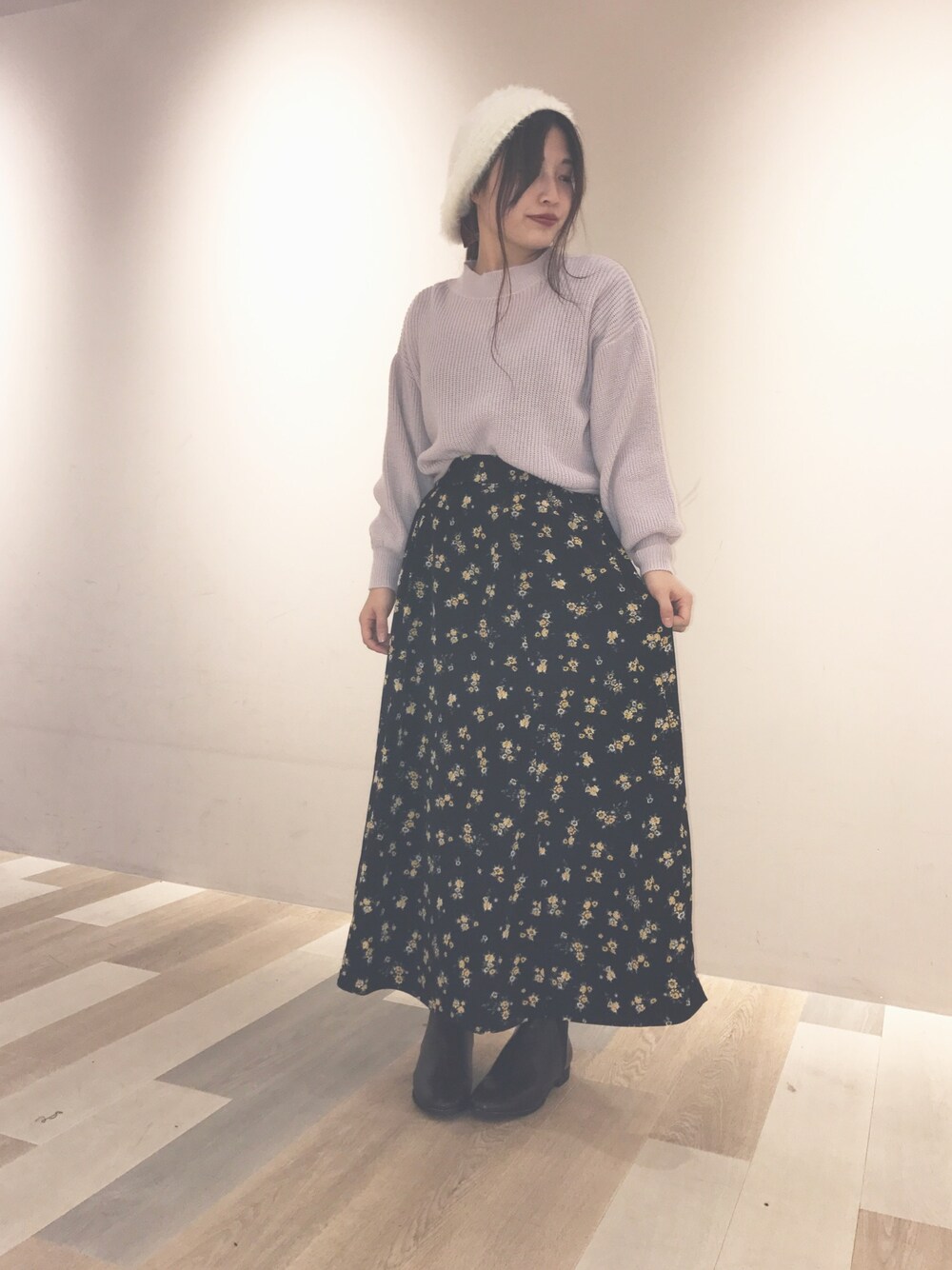 少し早いですが春の 新作です🙆💕 ショート丈畦ニットプルオーバー 2149円 ラベンダーカラー⭐️ フラワーロングスカート 2149円 ラベンダー×ブラックの 甘辛ミックスコーデ☺️💕 トップスは、丈が短いと脚が長く見える効果があるので、ワンピースやハイウエストのボトムスと合わせてスタイルアップを狙っても🙆✨ カラーバリエーションはブラック以外は、淡いパステルカラーなので、ふんわりと春らしい雰囲気を出せます🙆💕 お値段もお手頃な2149円なので、普段選ばないカラーにも挑戦しやすいのでオススメです🙆💕 春物だけど、今からも使えるニットプルオーバーです😊 スカートは、上品なフラワープリント! ロング丈は、過度な露出のない品の良さや、印象的に揺らめくフォルムが魅力です🙆