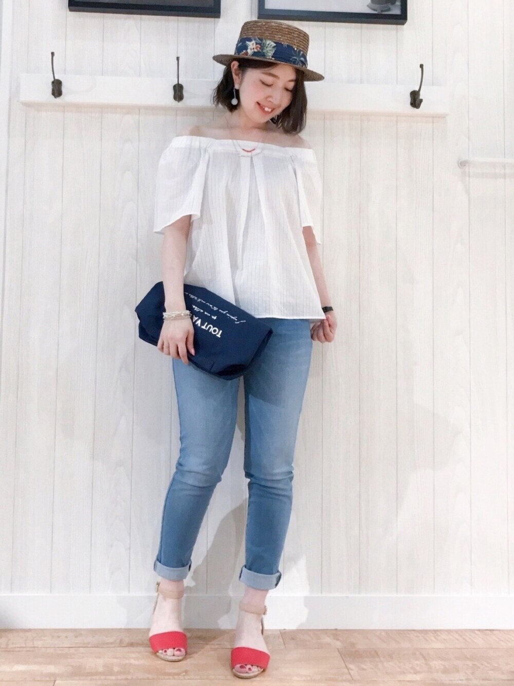 ご覧いただきありがとうございます(*^o^*) いつも いいねやお気に入り+、フォローもありがとうございます♡ 本日は、白×薄色デニム×赤🇫🇷 DRESKIPのオフショル2wayブラウス、凹凸感のあるストライプ柄が全体に入っていて可愛いです💕 今回オフショルで着てますが、スクエアネックのブラウスとしても着ることができます♡ お袖もフレアスリーブで、気になる二の腕もカバーできるのが嬉しいポイント^^✨ 薄色デニムと合わせてシンプルに♡ サンダルは、オレンジっぽい赤色が差し色になって可愛いです❤️ ヒールはメタリックになっていて、サイドから見てもオシャレ✨ ローヒールなので、歩きやすくて疲れにくいです(*^^*) 見てくださってありがとうございます♡ インスタもマイペースですが更新中(^ ^) ぜひこちらも遊びに来て下さい♡ Instagram▷rina_y26