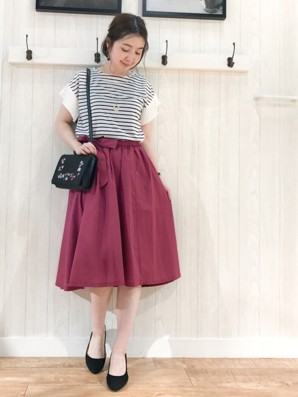 ご覧いただきありがとうございます(*^o^*) いつも いいねやお気に入り+、フォローもありがとうございます♡ 本日は、#狂わせピンク♡ 皆さんが可愛いピンクコーデしてるのを見て、ピンクが着たくなったので滑り込みました 笑 DRESKIPの綺麗なラズベリーピンクのスカート☺️❤️ ウエストリボン付きで、トップスをインした時もアクセントになって可愛いです♡ シワになりにくい素材なのも嬉しいポイント♡ ハリのある素材感が綺麗で気に入ってます(^^) トップスはシンプルにボーダーカットソー合わせで✨ お袖が切り替えでプリーツになってるのが、可愛いです😆 小物でカジュアルダウンさせようか迷ったのですが、スカートの可愛さに合わせてきれいめにまとめました♪ 黒のバッグ、パンプスで引き締めてます☺️ バッグはお花の刺繍が入っていて、めっちゃ可愛いです❤️ バッグはまだ検索に上がらなかったので、また更新しますね♪ 見てくださってありがとうございます♡ インスタもマイペースですが、更新中(^ ^) ぜひこちらも遊びに来て下さい♡ Instagram▷rina_y26