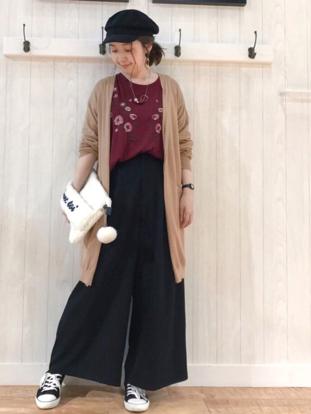 ご覧いただきありがとうございます(*^o^*) いつも いいねやお気に入り+、フォローもありがとうございます♡ 本日は、キャメル×ボルドー×ブラック♪ カーデとトップスは着回し❤️☺️ お気に入りのモチモチ素材が気持ちいいカーディガンと、刺繍のニットソーです♡ ワイドパンツは、昨日の色違い♪ ゆるシルエットが気に入ってます😍 小物は、スニーカー合わせでカジュアルにしました☺️ コーデュロイの質感が可愛いキャスケットにボアのクラッチバッグ♡ こちらのCutie Blondeのクラッチは、ショルダー紐も付いてるので斜めがけなどもできます💕 もふもふのポンポンチャームも付いてて可愛いです♡ 今日はお休みなので、のんびりします✨🎮 ちょっと出かけようかな〜☺️ 見てくださってありがとうございます♡ Instagram▷rina_y26