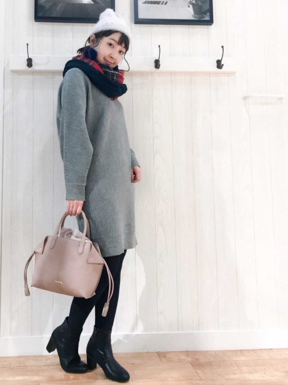 ご覧いただきありがとうございます(*^o^*) いつも いいねやお気に入り+、フォローもありがとうございます♡ 本日は、ニットワンピ♪ シューラルーのニットワンピに、チェック柄スヌードを合わせました♡☺️ お袖が少しドルマンっぽくゆっくりしたデザインになっていて、ゆるっと可愛いです(´∀`*) 合わせたスヌードは、ケーブルニット面とチェック柄面のあるタイプ✨ 巻き方で雰囲気を変えることができます(^∇^) ふわふわファーのニット帽も手ざわりよくてお気に入りです😍 バッグ👜は中に巾着付きで、可愛く中身をガードできるので便利です☺️💕 四隅の折り込みデザインも珍しくて、見た瞬間可愛いー😍となりました 笑 見てくださってありがとうございます♡ Instagram▷rina_y26
