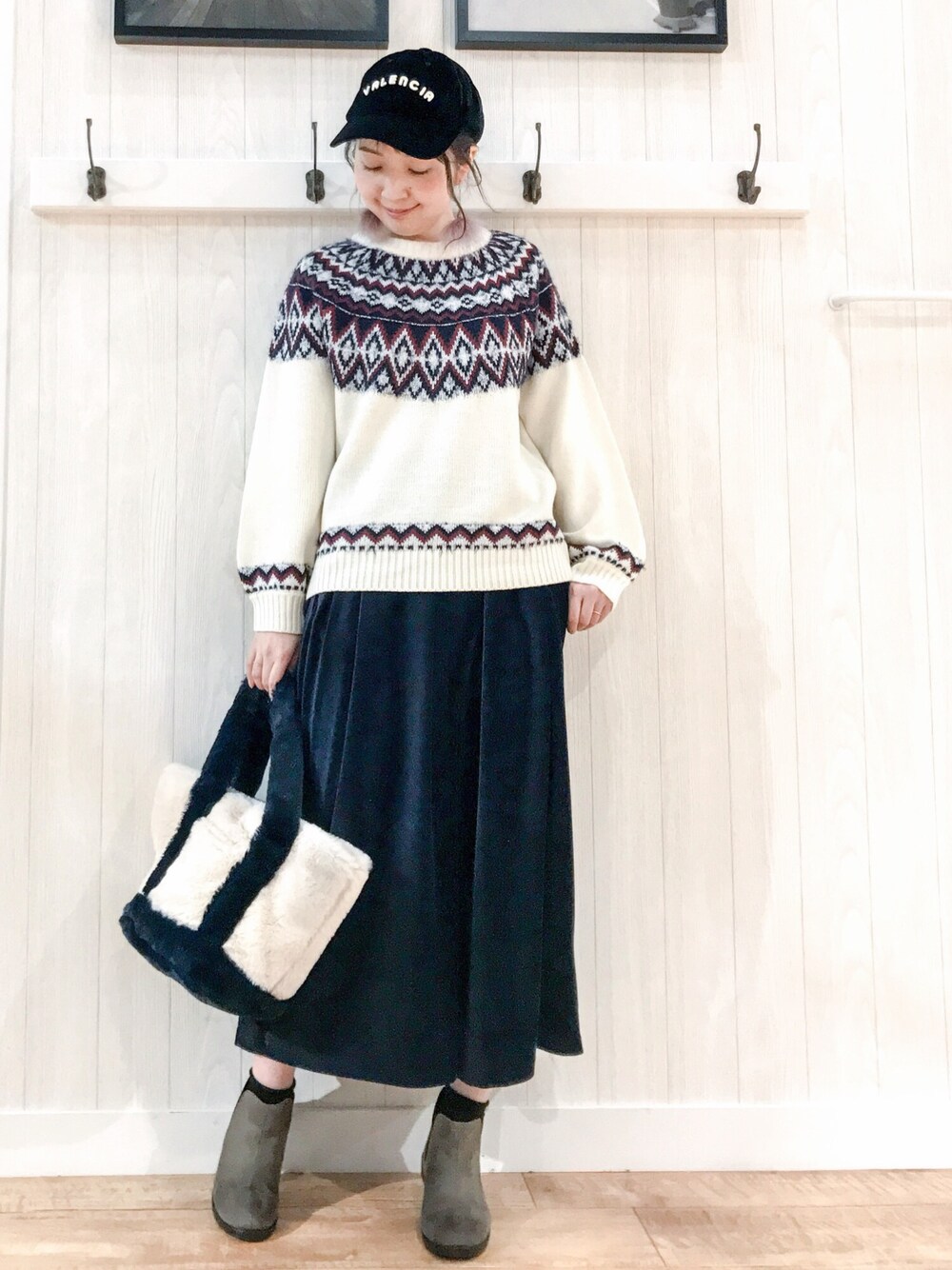 ご覧いただきありがとうございます(*^o^*) いつも いいねやお気に入り+、フォローもありがとうございます♡ 今日はお休み✨ 最近バタバタだったので、ちょっとのんびりしようと思ってます( ˘ω˘ ) ためてる家事やらねば 笑🤣 本日は、ゆるっとカジュアル♪ Cutie Blondeのフェアアイル柄のニットに、リブベロアスカンツを合わせました^^💕 こちらのニット、一目惚れでした❤️😍 求心のフェアアイル柄が可愛いし、ニットの一部にフェザーが入っててふわふわした感じも可愛くて♡ お気に入りです💓 ベロアのスカンツは、リブ入り☺️❤️ 見えないですが、ウエストはリボンになってて可愛いです♪ ウエストゴムタイプなので楽ちんです☺️ 合わせたアウターは、リバーシブルの中綿ブルゾン😆 ベロア生地に刺繍と、キルトのリバーシブルです♡ 中綿が入ってるので暖かくて👍 お袖もたっぽりしてるので、厚みのあるニットやパーカーなどと合わせても大丈夫です🙆✨ 肩がけにしてますが、アウターありバージョンも小窓に載せてるので、ぜひご覧下さい☺️✨ 見てくださってありがとうございます♡ Instagram▷rina_y26