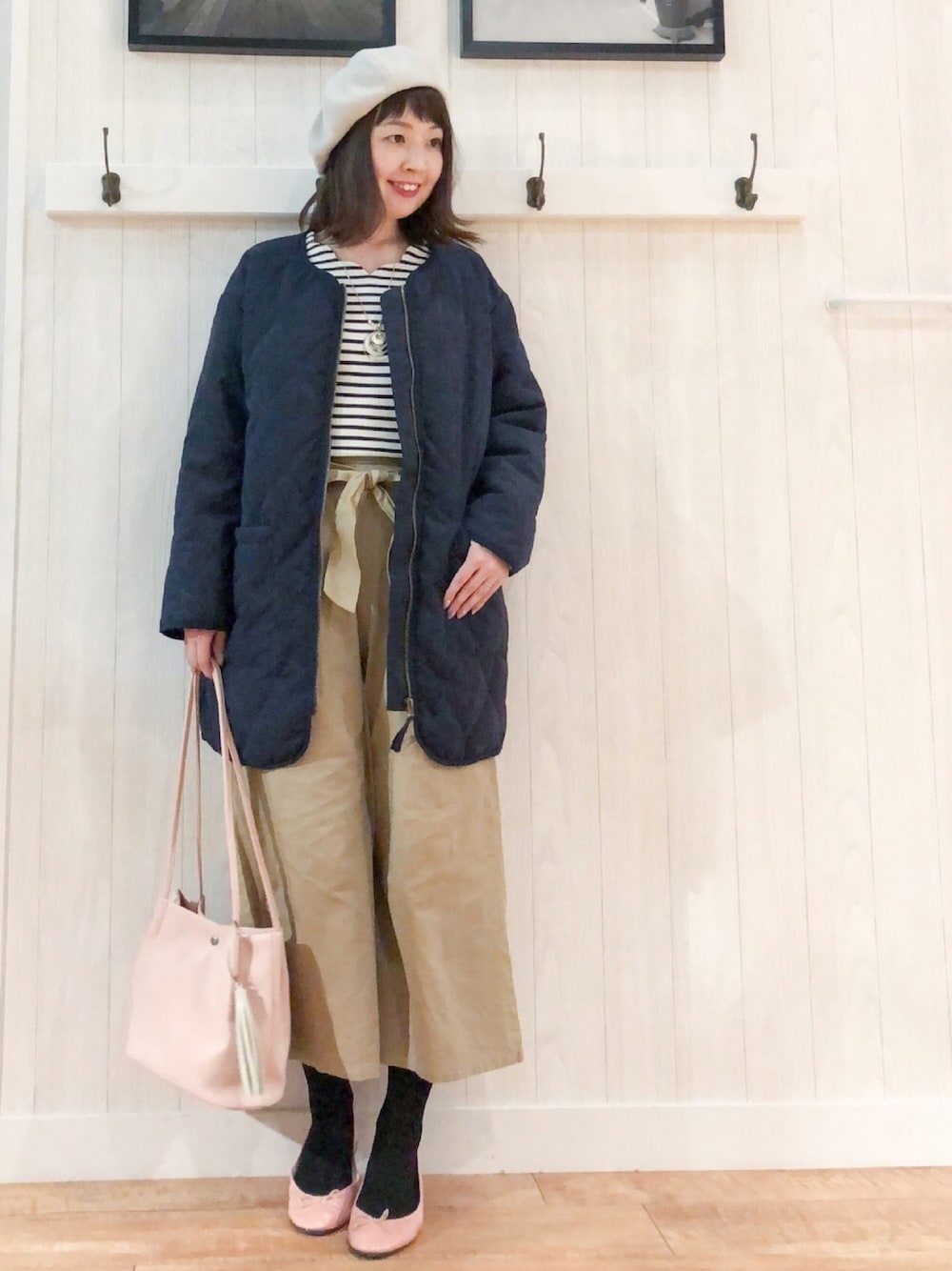 ご覧いただきありがとうございます(*^o^*) いつも いいねやお気に入り+、フォローもありがとうございます♡ 昨日はお休みだったので、実家帰省中の友達の息子ちゃんに会いに行ってきました〜💓☺️ 可愛くてほんと癒されました💕 会える間に沢山会いに行かなきゃです(*^_^*) タイムライン回れてなくてごめんなさいー💦🙇♀️ ゆっくりになっちゃいますが、また見に行きますね♪ 本日は、ネイビー×ベージュ✨ シューラルーのライナーコートに、Cutie Blondeのチノスカンツ合わせ♡ カジュアルにボーダーのトップスを合わせました☺️✨ 軽めのアウターですが、中綿であったか😍 チノスカンツは、程よくハリのある素材感が気に入って即購入しました❤️😍 まだ寒いのでタイツ合わせですが、もう少し暖かくなったら靴下合わせも良さそう✨ DRESKIPのボーダートップス、襟元がスカラップになってて可愛くて💕😆 プチプラ2149円です♡ 見てくださってありがとうございます♡