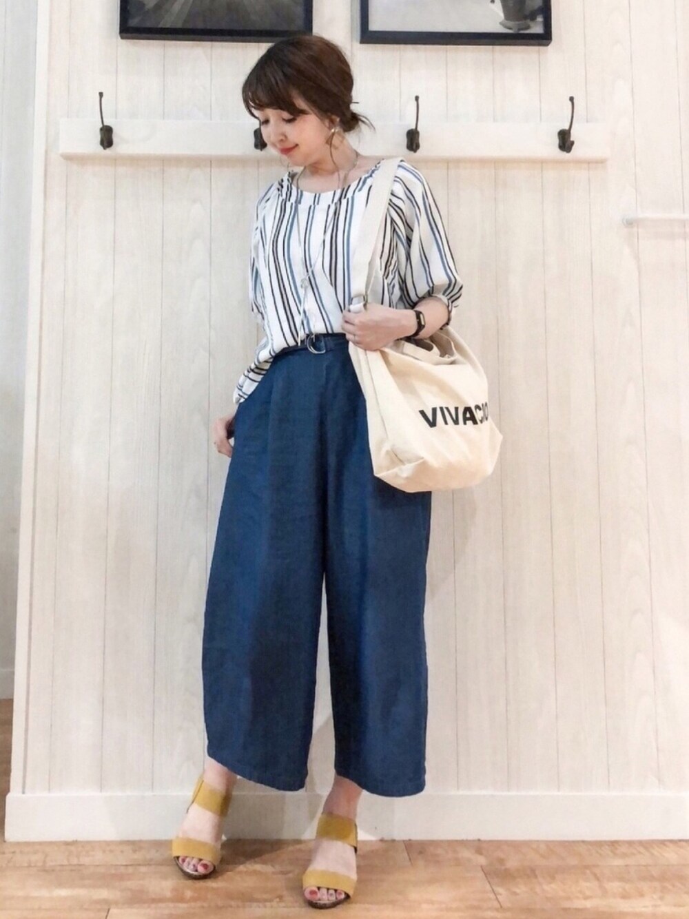 ご覧いただきありがとうございます(*^o^*) いつも いいねやお気に入り+、フォローもありがとうございます♡ 間空いちゃいましたー💦 なかなか写真を撮るタイミングが取れず😂 マイペースですが、よろしくお願いします🙇♀️ 本日は、ストライプ×デニム♪ Cutie Blondeのストライプブラウスに、DRESKIPのデニムワイドパンツ合わせ🙋♀️ 夏らしい爽やかイメージです✨🌻 毎日めっちゃ暑いので、色だけでも爽やかに 笑 同じシューラルーのkitaさんと色違いのブラウスで、双子コーデっぽくなりました♡☺️ 小窓には、笑顔が可愛いkitaさん💕 ぜひご覧下さいませ😘 ブラウスのバックリボンが可愛いのですが、上手く写真が撮れなかったので、こちらも小窓の商品詳細でご覧下さいませ😊 見てくださってありがとうございます♡