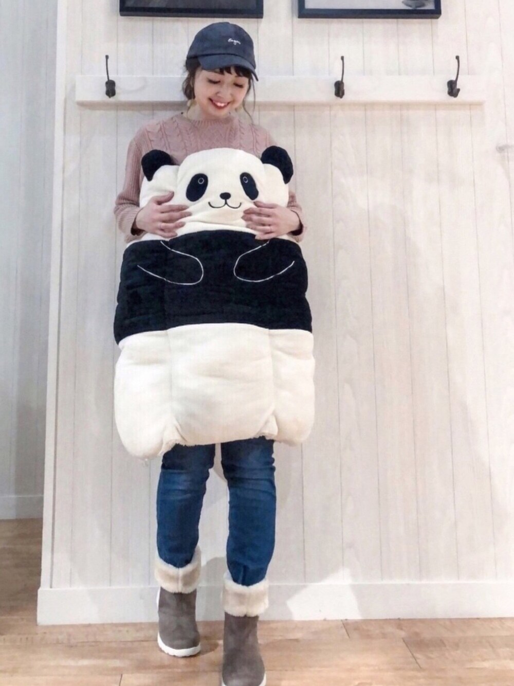 ご覧いただきありがとうございます(*^o^*) いつも いいねやお気に入り+、フォローもありがとうございます♡ 前のお店にヘルプで行ってたので、写真撮らせてもらってきました〜📸 異動して少ししか経ってないのに、懐かしかったです☺️ 本日は、シューロール🐼with カジュアル♪ シューラルーのあったかロールクッション、シューロールに入ってみました☺️💓 以前ナマケモノとコアラ🐨に入ってみたのですが、パンダ🐼とレッサーパンダが入荷しました🙋♀️❤️ もちろん入りますよね 笑🤣❤️ 今回はパンダ🐼にしました☺️ めっちゃ暖かくて癒されます💕 ふわふわ柔らかでほっとします😍 ペットも入ったら気に入って出てこないとの話も多くて🙋♀️ ワンちゃんや猫ちゃんにもオススメです🐕🐈💓 シューロールの中身は、シューラルーのもちもちの柔らか手触りのケーブルニットに、裏起毛デニム👖を合わせました😊 少し長めでお尻の隠れる丈なので、スキニー合わせでも安心です☺️ 合わせたブーツは、今シーズン注目のスニーカーブーツ♪ 軽くて履きやすくていい感じでした💕 フェイクファーで暖かくて☺️ 吸水速乾・消臭効果の機能付きです✨ 微撥水効果もあるので、急な雨や雪の時にも安心です(^^) シューロールでほぼコーデわからないので、また普通バージョンも載せますね🙋♀️ 見てくださってありがとうございます♡