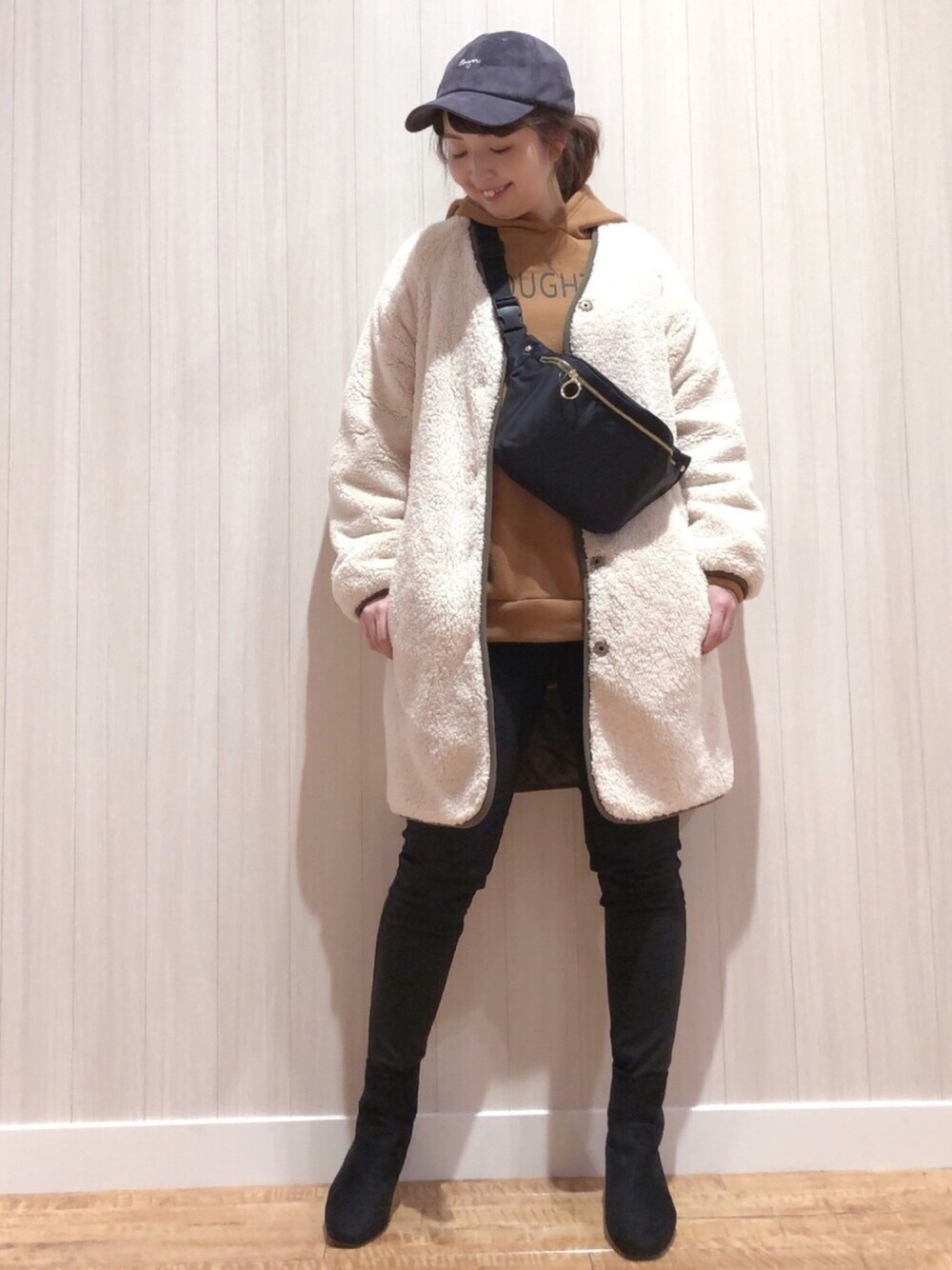ご覧いただきありがとうございます(*^o^*) いつも いいねやお気に入り+、フォローもありがとうございます♡ 本日は、シューラルーウィンターセールのスタート日です✨✨🤗 今すぐ使えるアウターやニット、ストールやバッグなどの雑貨類もお買い得となります♪ ぜひお近くのシューラルーや、オンラインストアへお越し下さいませ♡🙇♀️ そんな本日のコーデは、もこもこコートにパーカーでカジュアル♪ Cutie Blondeのボアとキルトのリバーシブルコート、めっちゃ暖かくてオススメです💕 両面どちらも使えて便利です🙋♀️ お袖もゆったりボリュームのあるタイプなので、インナーに厚めのニットを着ても大丈夫でした🙆♀️ ロゴパーカーは裏起毛の暖かいタイプ✨ 柔らかくて重くないので、着ていても楽ちんです♪ 大きめに着たかったので、Lを着ています☺️ ボトムは、シューラルーの発熱スキニー合わせですっきりと😊 小物はキャップにウエストポーチ合わせで、カジュアル感強めにしてみました♪ 見てくださってありがとうございます♡