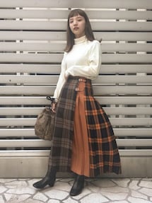 リナ(SHOO・LA・RUE)のニット/セーター「◆ガーター編み モックネック ニット」を使ったコーディネート