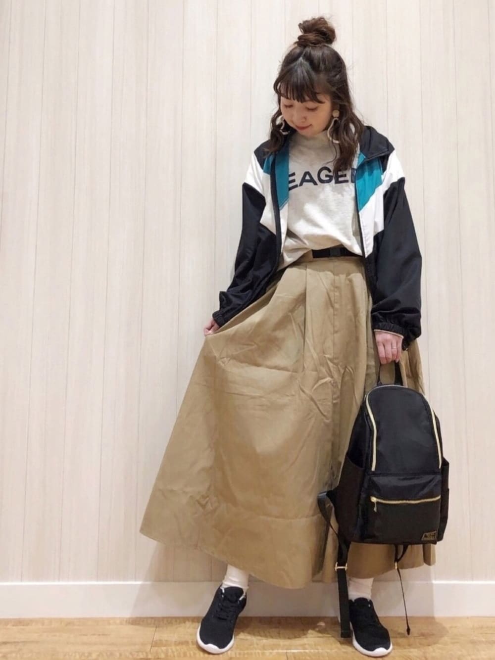 ご覧いただきありがとうございます(*^o^*) いつも いいねやお気に入り+、フォローもありがとうございます♡ 本日は、スポーツミックス👟 Cutie BlondeのV配色ブルゾンにロゴスウェット、ボリュームチノスカートを合わせました☺️✨ めっちゃカジュアルな感じで♪ ブルゾン、スポーティーな感じでさらっと羽織りやすかったです🙋♀️✨ デニムに合わせても良さそうです🙌💓 チノスカートはボリュームがあって、とっても可愛かったです❤️ 長さもちょうど良くて✨ 嬉しかったです💕 こちらのリュックはなんと! 12ポケットもあって🤗 細かく収納できて便利です✨✨ 前ポケットの内側には鍵が迷子にならない、キーフックも付いてます🙆♀️ あと、私的に嬉しかったのが背面のファスナー! リュックの背面ファスナーが中と繋がっていてお財布がすぐ取り出せる機能、今まで上手く使えてなくて😂 手を入れても中々探せなかったのです 笑 ←私がどんくさいだけなんですけどね 笑 が、こちらのファスナーは開けるとメッシュのポケットに繋がっているので、お財布がバッグの中で行方不明にならないのです✨✨ こちらのリュックを購入してから、やっと背面ファスナーの便利さに目覚めました💓😍 背面ファスナーについて語りましたが、中もペンをさせる細いポケットがあったり、ゴム付きのドリンクホルダーもあるしで、かなり便利です✨✨🤗 毎日の通勤に背負ってます 笑 オススメリュックでした❤️ 見てくださってありがとうございます♡