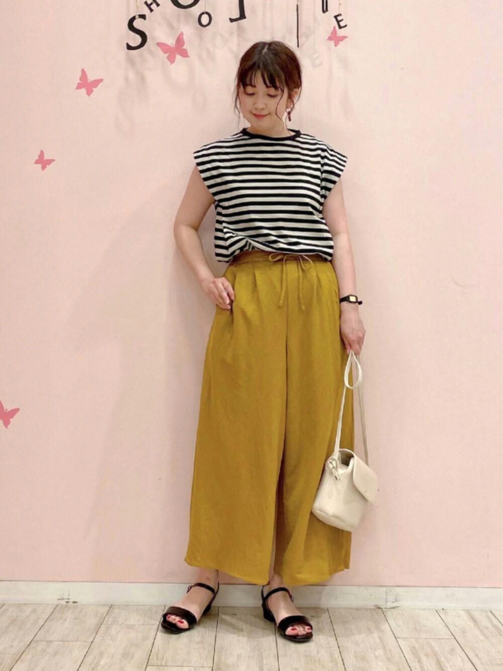 ご覧いただきありがとうございます(*^o^*) いいねやお気に入り+、フォローも ありがとうございます♡ 素敵なフォルダにも入れてくださって ありがとうございます🙇♀️ *WORLD ONLINE STOREの スタイルスナップにも投稿してます♪ 色んなコーデを載せてるので プロフィールのリンク(🖥)から チェックお願いします👀✨ *Instagram→ rina_y26 別ショット📸載せてます♡ こちらもプロフィールからチェック🙏 本日はシンプルコーデ♪ DRESKIPのショルダータックTシャツに ひんやりイージーパンツを合わせました🙋♀️ 程よい太さのボーダーがいい感じで 気に入ってます♡ イージーパンツは ひんやり素材が涼しくて気持ちいいです✨ ゆるっとしたシルエットで 楽〜に穿いて頂けるので まだまだ暑い今の時期にオススメです◎ マスタードカラーが可愛くて 一目惚れでした❤️ 見てくださってありがとうございます♡