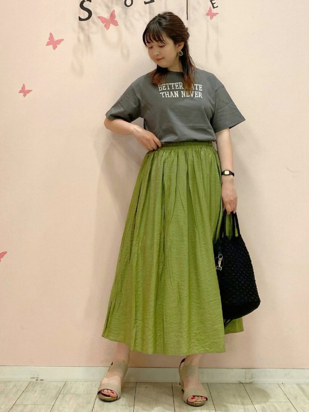 ご覧いただきありがとうございます(*^o^*) いいねやお気に入り+、フォローも ありがとうございます♡ 素敵なフォルダにも入れてくださって ありがとうございます🙇♀️ *WORLD ONLINE STOREの スタイルスナップにも投稿してます♪ 色んなコーデを載せてるので プロフィールのリンク(🖥)から チェックお願いします👀✨ *Instagram→ rina_y26 別ショット📸載せてます♡ こちらもプロフィールからチェック🙏 本日はカジュアルコーデ♪ シューラルーの ロゴTシャツにオーガンジーフレアスカートを 合わせました🙋♀️✨ Tシャツはひんやり接触冷感の涼しいタイプで 着心地もいいです💕 オーガンジーフレアスカートは ウエストにギャザーが入っていて ふんわりしたシルエットが綺麗です✨ 歩きやすいシューダルと合わせて お休みの日のカジュアルコーデを イメージしました🙋♀️ スカートとサンダルとバッグは セールになってるので お早めにチェックしてみて下さい😍 子どもがRSウイルスから回復したかと思ったら 今度は自分が咳と声枯れになってしまって😂💦 熱はないけど声カッスカス😂 子どもの病気のあとは大抵自分も病気になってます…😭笑 ちなみに夫も😂 子どもの病気恐ろしい…🤣 早く治りますように🙏 見てくださってありがとうございます♡