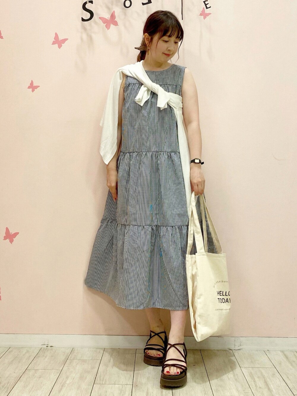 ご覧いただきありがとうございます(*^o^*) いいねやお気に入り+、フォローも ありがとうございます♡ 素敵なフォルダにも入れてくださって ありがとうございます🙇♀️ *WORLD ONLINE STOREの スタイルスナップにも投稿してます♪ 色んなコーデを載せてるので プロフィールのリンク(🖥)から チェックお願いします👀✨ *Instagram→ rina_y26 別ショット📸載せてます♡ こちらもプロフィールからチェック🙏 コーデが溜まってきてるので本日2枚目🙌 ティアードワンピースコーデ♪ Cutie Blondeのティアードワンピースに DRESKIPのカーディガンをたすきがけしました✨ トレンドのティアードワンピース こちらはギンガムチェックの柄が新鮮でした💕😍 バックには結びリボンもついてて可愛いです✨ 後ろからの写真撮りそびれたので また商品詳細から見てみて下さい🙇♀️✨ ハリのある素材でパリッとしていて 裾の広がりが綺麗でオススメです🥰 見てくださってありがとうございます♡