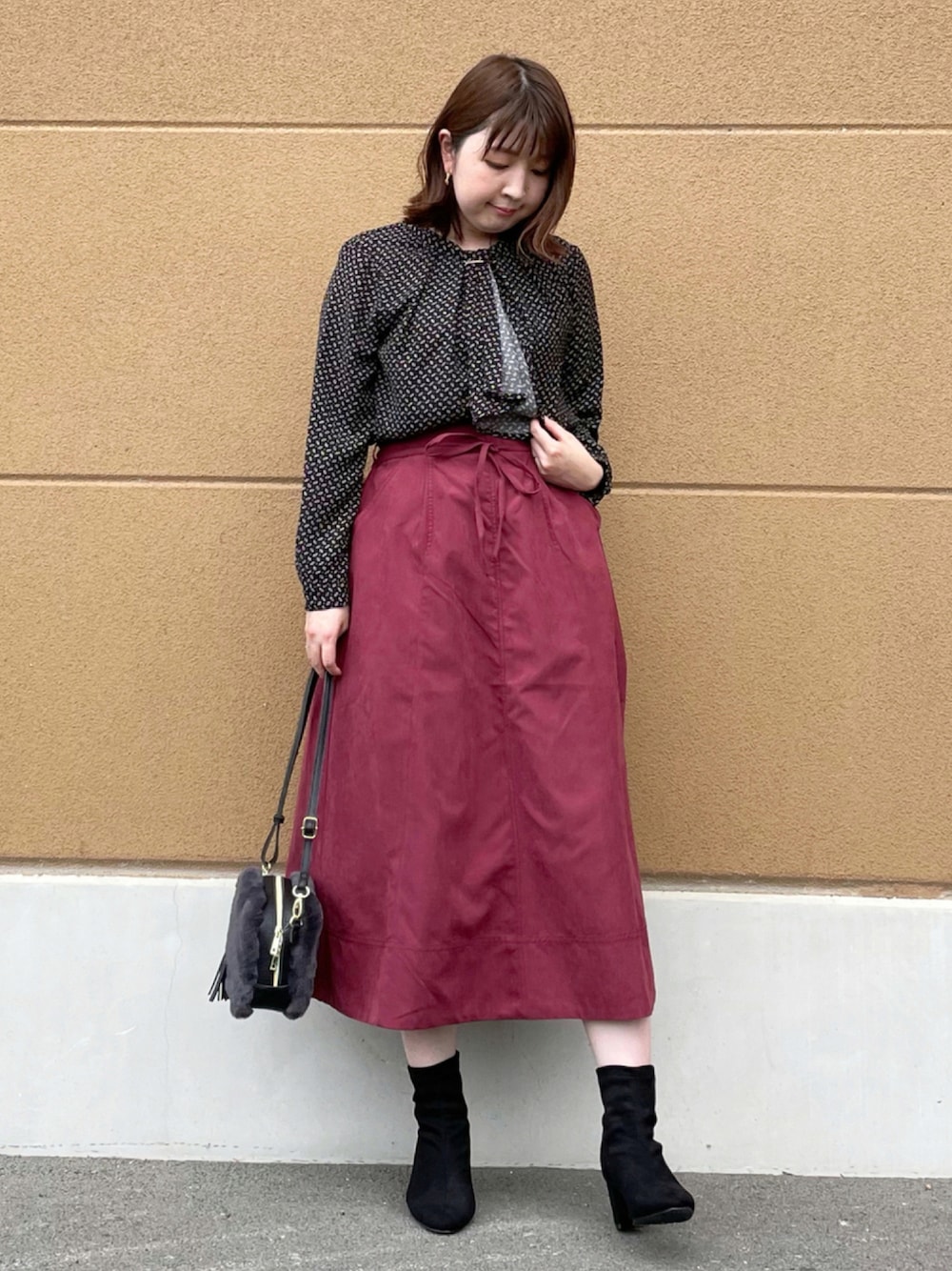 ご覧いただきありがとうございます( ・ᴗ・ )♡ いいねやお気に入り+、フォローも ありがとうございます♡ 素敵なフォルダにも入れてくださって ありがとうございます🙇♀️ 𓂃𓂃𓂃𓂃𓂃𓂃𓂃𓂃𓂃𓂃𓂃𓂃𓂃𓂃𓂃𓂃𓂃 ブラック×ワインレッド🍷🍇 DRESKIPのメタル使いボウタイブラウスに ハイウエストフレアスカートを合わせました🙋♀️ さらりとした滑らかな素材のブラウスは 着心地がとてもよかったです◎ メタルバーとボウタイデザインが華やかな印象❣️ 1枚着でもカーディガンやジャケットを羽織っても◎ ワインレッドのカラーが可愛いフレアスカートは ピーチ素材🍑で滑らかな表面が触り心地抜群✨ ハイウエストなので脚長効果もあります🙋♀️ ショートブーツはストレッチが効いていて 履きやすいです👢 ヒールも太めで安定感があって◎ 6.5㎝の高さがありますが、歩きやすいです☺️ 足首周りのステッチデザインも可愛いので オススメのブーツです😍 𓂃𓂃𓂃𓂃𓂃𓂃𓂃𓂃𓂃𓂃𓂃𓂃𓂃𓂃𓂃𓂃𓂃 *WORLD ONLINE STOREの スタイルスナップにも投稿してます♪ 色んなコーデを載せてるので プロフィールのリンク(🖥)から チェックお願いします👀✨ *Instagram→ rina_y26 別ショットや日常のことを載せてます♡ プロフィールからチェック🙏 見てくださってありがとうございます♡