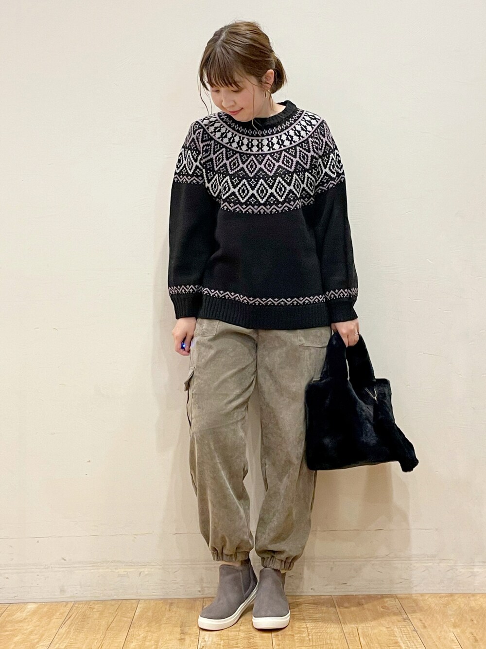 ご覧いただきありがとうございます( ・ᴗ・ )♡ いいねやお気に入り+、フォローも ありがとうございます♡ 素敵なフォルダにも入れてくださって ありがとうございます🙇♀️ 𓂃𓂃𓂃𓂃𓂃𓂃𓂃𓂃𓂃𓂃𓂃𓂃𓂃𓂃𓂃𓂃𓂃 ⌇ノルディック風求心柄ニット✩*⋆⌇ ノルディック風の求心柄が可愛いニットにコーデュロイ素材のカーゴジョガーパンツを合わせたカジュアルコーデ🙆♀️✨ モノトーンにピンクのお色の柄も入ってるのもポイント✨☺️ 可愛くて気に入ってます♡ カーゴジョガーパンツはゆるめのシルエットでラフに穿いていただけます🙋♀️ プチプラなのでお色違いで揃えるのも👍 バッグはふわふわでさわり心地抜群😍 ポーチもついてるので、小物の収納もできます◎ 最近寒いので暖かいニットのコーデが増えますね☺️❄️ 𓂃𓂃𓂃𓂃𓂃𓂃𓂃𓂃𓂃𓂃𓂃𓂃𓂃𓂃𓂃𓂃𓂃 *WORLD ONLINE STOREの スタイルスナップにも投稿してます♪ 色んなコーデを載せてるので プロフィールのリンク(🖥)から チェックお願いします👀✨ *Instagram→ rina_y26 別ショットや日常のことを載せてます♡ プロフィールからチェック🙏 見てくださってありがとうございます♡